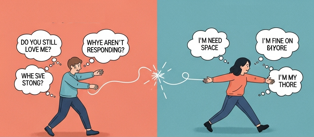 - 焦虑型感到一丝不安,开始**“追逐”**(发更多信息、打电话、质问)。
